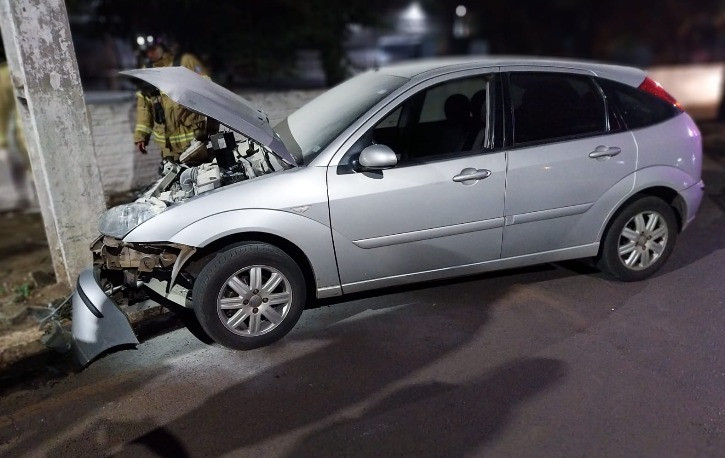 Carro bate em poste e pega fogo no Bairro São Cristovão em Francisco Beltrão