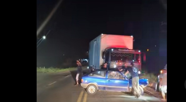 Condutor de carro fica ferido após colisão com caminhão na PR-180