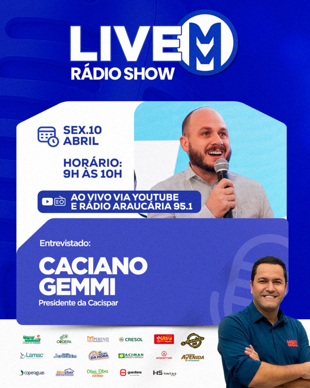Nesta Sexta-feira dia 10, nossa live bate um papo com Caciano Gemmi, Presidente da Cacispar.