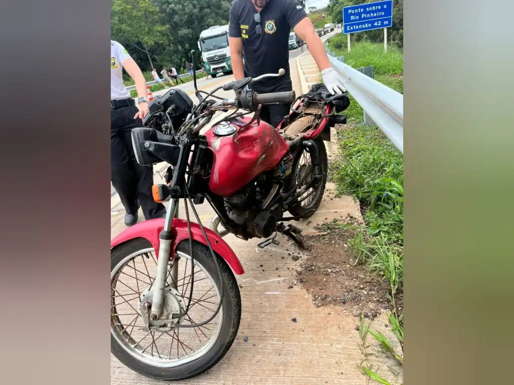 Condutor de motocicleta fica ferido após colisão com caminhão